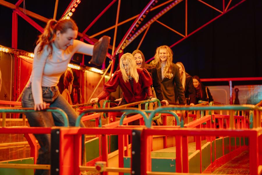 Trillende vloeren, bewegende trappen, draaiende gangen; je vindt ze allemaal in de Cakewalk. Durf jij het aan?