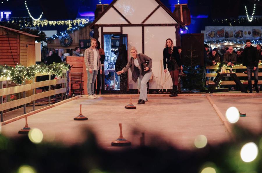 Kom gezellig langs met familie en vrienden om samen te curlen op Het Amsterdamse Winterparadijs. Het doel van het spel is om de curlingsteen over de baan te laten glijden en deze zo dicht mogelijk bij het midden van de cirkel te krijgen. Je kunt hem natuurlijk een handje helpen. Dus zorg dat pietje-precies in jouw team zit en ervaar het op Het Amsterdamse Winterparadijs.